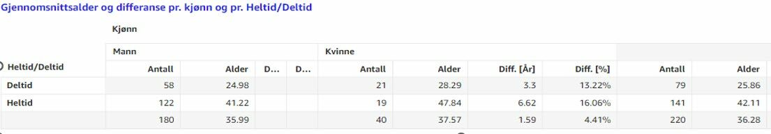 Selskapet har en stor andel av unge arbeidstakere som kombinerer deltidsstillingen med skole og studier, samt økte stillingsandeler i forbindelse med ferieavvikling. Det vises i tabell der snittalder på menn er 25 år og for kvinner 28 år. Snittalder for heltidsansatte er vesentlig høyrere.